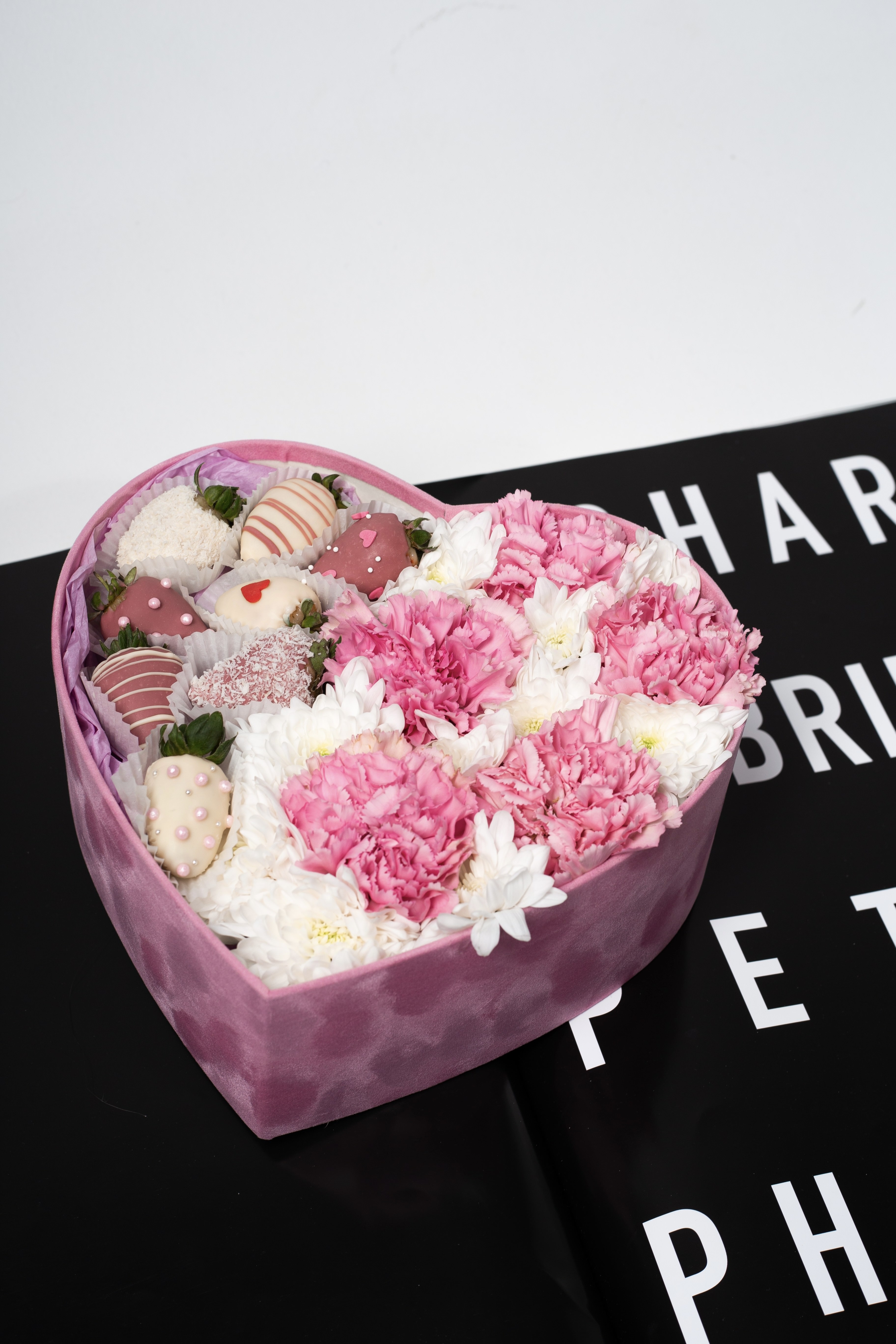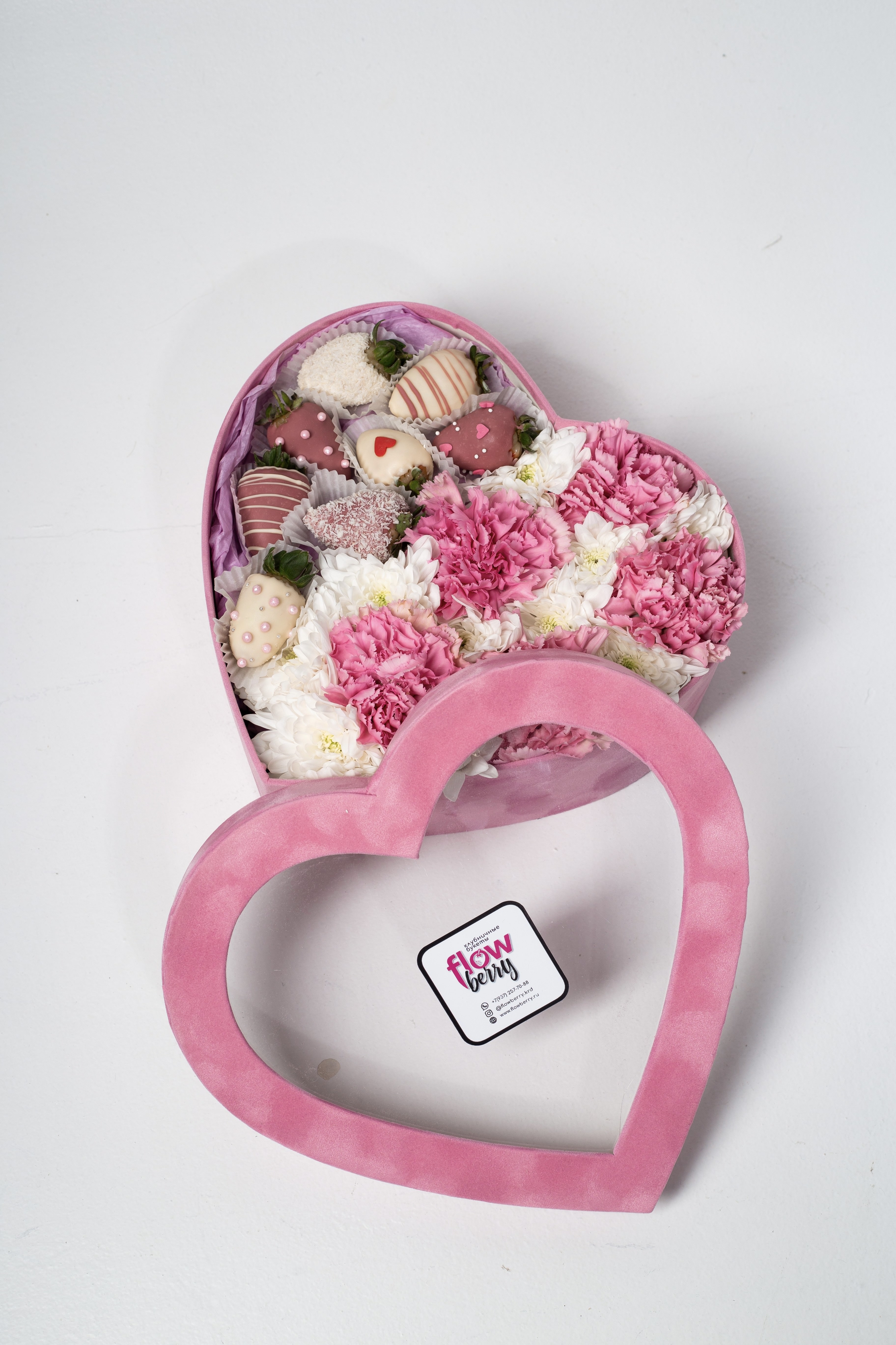 Коробка клубника с цветами «Для тебя» - букет, который раскрывает всю свою прелесть благодаря тщательно подобранному оформлению и упаковке