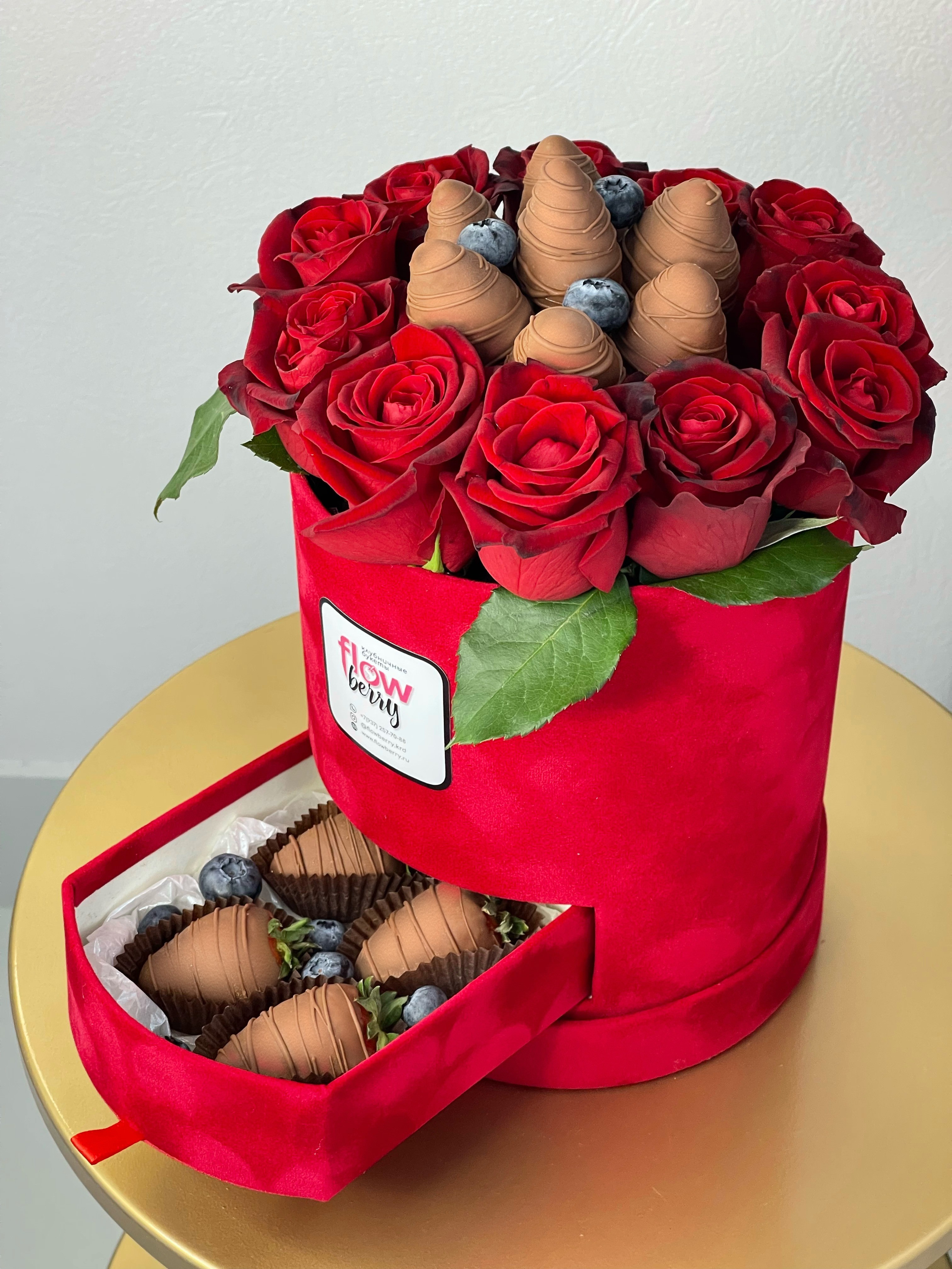 Шкатулка с клубникой «Red angel» - букет, который оформлен с особым вниманием к деталям, что придает ему неповторимый шарм