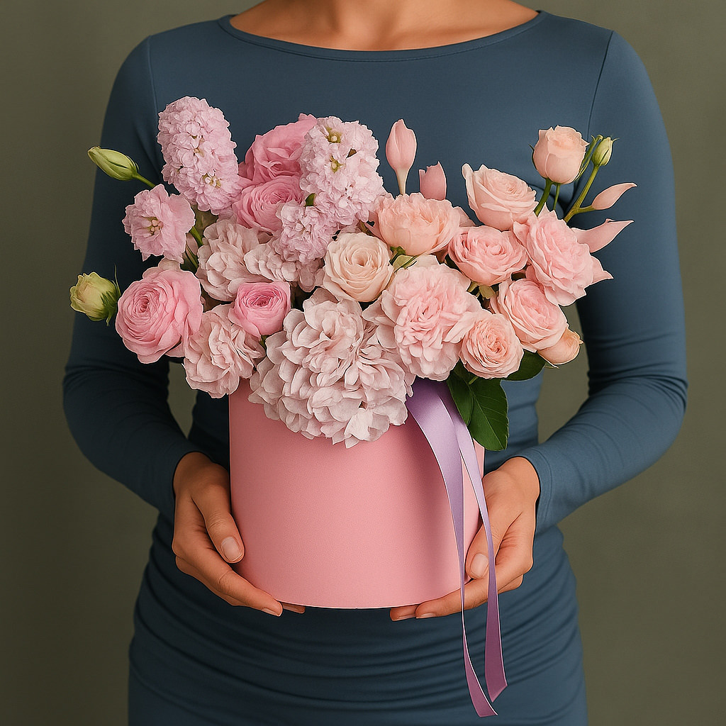 Воздушная композиция из пудровых оттенков словно создана для самых романтичных мгновений. Такой букет подчеркнёт утончённость и изящество получателя.